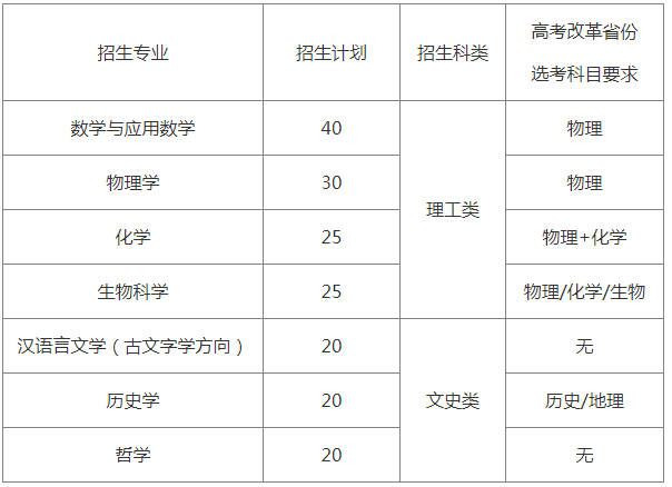 2020年我校强基计划招收180人,招生专业如下: