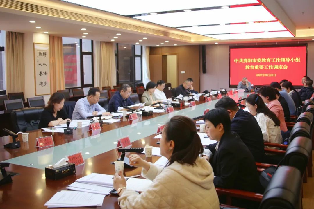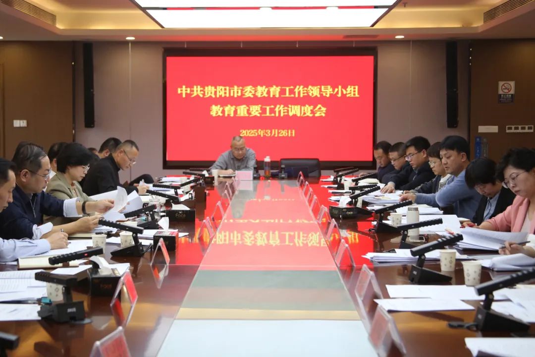 副市长、市委教育工作领导小组副组长付涛讲话。 会上,云岩区、南明区、白云区、修文县、开阳县分别围绕“全面提升中小学理科学科教学质量,推动基础教育扩优提质”“学前教育普及普惠”“义务教育优质均衡”“教育资金保障”“县域高中振兴”等作了工作汇报;安排部署2025年校园监管、教育经费保障以及未成年人保护等重点工作。 会议强调,贵阳贵安各有关市直部门、区(市、县)党委教育工作领导小组要聚焦基础教育扩优提质、学前教育普及普惠、义务教育优质均衡、县域高中振兴等中心工作,加强统筹,确保领导小组相关工作部署执行到位;要建立教育经费监管工作机制,对不按要求使用甚至截留教育上专资金,或不按要求保障本级教育资金的,将严肃问责;要坚持优先发展教育事业,围绕教育中心工作,在党建引领、编制保障、教师减负等方面发力;要坚持科学谋划教育发展,总结教育“十四五”发展成效亮点,推进教育“十五五”规划编制工作,明确目标、细化措施,描好愿景,绘好蓝图;要坚持办好人民满意教育,建立和人口变化相适应的学位保障机制,不断扩增优质教育资源;要坚持目标导向、问题导向、改革导向、结果导向,精准施策破难题,补齐教育发展短板弱项,扎实推进学位供给保障、中职教育监管等省委巡视反馈问题整改,促进贵阳贵安教育内涵提升,满足人民群众日益增长的对优质均衡教育的需求。 校园安全是教育高质量发展的基础工程。会议要求,各级各部门要常抓不懈做好校园安全工作,要从紧从严从细从实把好校园食品“安全关”,用好学生餐和校服相关监督检查的结果,对工作中发现的作风问题、腐败问题线索等,及时移交市纪委监委,坚决落实风腐同查工作要求;要整合力量,加大对校园周边环境综合治理和非法出版物等排查;要按照职责分工,通力协作,构建家庭、学校、社会“三维一体”的未成年人保护网络,全面做好贵阳贵安未成年人保护工作;要强化学生安全教育,加大交通安全隐患排查整治,切实营造让家长放心、社会满意的教育环境,为贵阳贵安教育高质量发展筑牢根基。 市委教育工作领导小组相关成员、有关市直部门负责同志、各区(市、县)教育工作领导小组负责同志、市教育局其他班子成员参会。