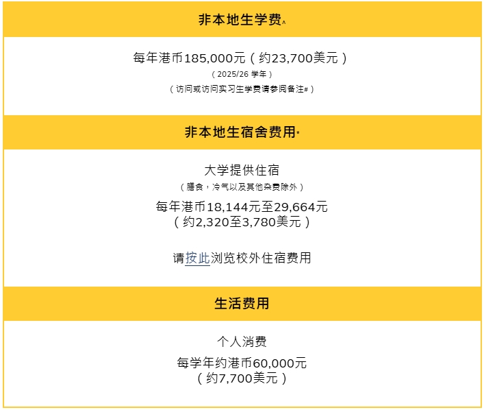 香港岭南大学的学费为每年 145,000 港币,优秀考生可获全免学费、半免学费及定额奖学金等奖学金项目。