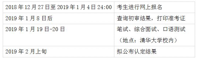 报名链接:http://bk.join-tsinghua.edu.cn,注册或登录后选择“外语类保送生”进行报名。报名起止时间:2018年12月27日至2019年1月4日24:00。
